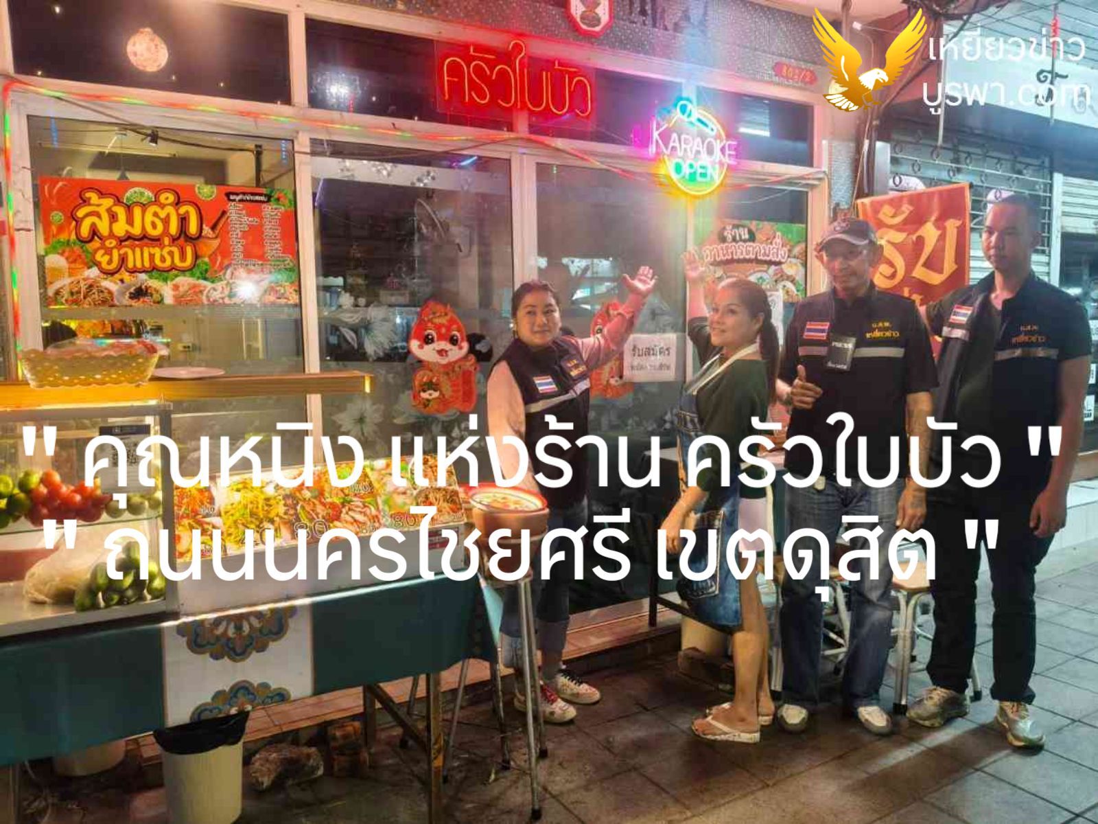 เมื่อวันที่ 10 กุมภาพันธ์ 2569 ผู้สื่อข่าวอั้น ผู้สื่อข่าวกุ้ง ทีมงานประธานแบงค์ ประธานใหญ่แห่งหนังสือพิมพ์เหยี่ยวข่าว เข้าพบปะเยี่ยมเยียนพูดคุยกับคุณหนิง แห่งร้านครัวใบบัว ที่ถนนนครไชยศรี เขตดุสิต กรุงเทพฯ โดยคุณหนิงผู้บริหารร้าน ได้นำอาหารเมนูเด็ดของร้าน มาให้การต้อนรับทีมงานผู้สื่อข่าวเหยี่ยวข่าว ด้วยความอบอุ่นและเป็นกันเองเป็นอย่างยิ่ง