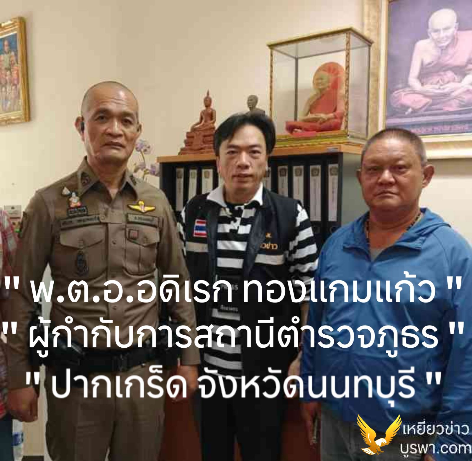 เมื่อวันที่ 23 กุมภาพันธ์ 2569 เวลาเที่ยง ประธานแบงค์ ประธานใหญ่แห่งหนังสือพิมพ์เหยี่ยวข่าว พร้อมคุณพีรยศ หัวหน้าข่าวภาค 1 หนังสือพิมพ์เหยี่ยวข่าว และรองเอก เหยี่ยวข่าว เข้าพบปะเยี่ยมเยียนพูดคุยเข้าพบปะพันตำรวจเอกอดิเรก ทองแกมแก้ว ผู้กำกับการสถานีตำรวจภูธรปากเกร็ด จังหวัดนนทบุรี